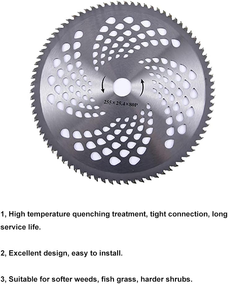Sadaiv Nipun 60T 10" Steel Cutting Blade, Alloy Steel Brush Cutter Grass Trimmer Blade, Industrial Level Steel and Metal Saw Blade, High Hardness Size-255 X 25.4 X60T 80T Brand new brush cutter blade replacement accessory with high quality Made of high quality alloy steel material, high hardness and durable in use Easy to install and replace, a good replacement for the broken one It features stable performance and good working condition, convenient and practical This blade is suitable for most brush cutter on the market and is suitable for shearing grass