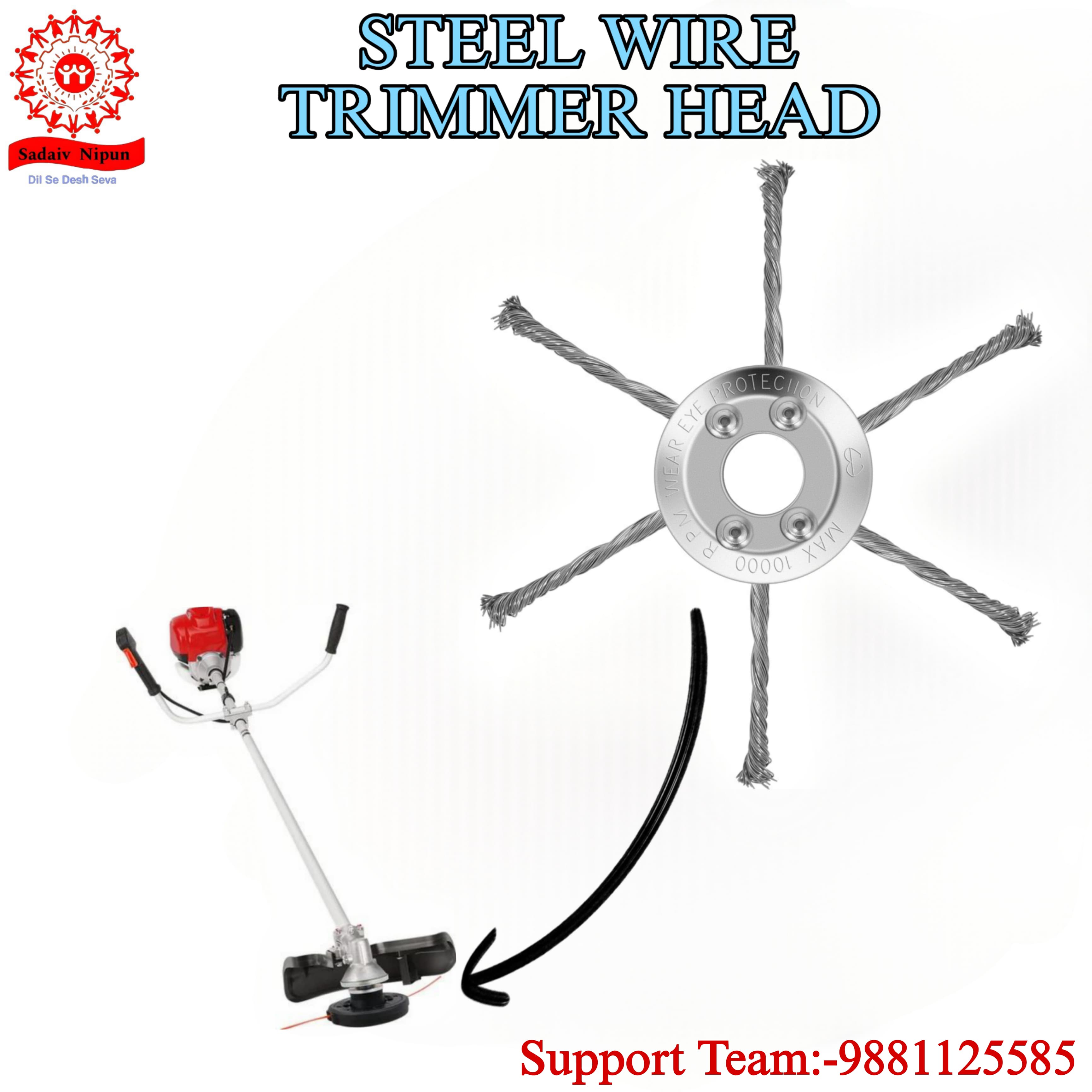 "The Premium Steel Wire Trimmer Head for Brush Cutters is designed to offer efficient cutting and lawn maintenance for a variety of outdoor tasks. Featuring high-strength steel wire, this trimmer head provides reliable durability and cutting power, making it the ideal choice for anyone looking to tackle weeds, grass, and light brush.Compatible with 35cc, 52cc, 63cc, and 72cc trimmers, this versatile trimmer head ensures a seamless fit with a variety of brush cutters, providing consistent and precise cuts on every job. Whether you're trimming grass, removing weeds, or maintaining a well-groomed lawn, this trimmer head delivers superior performance with every pass.The steel wire construction is built to last, offering long-lasting durability and resilience even in tough outdoor conditions. Its easy installation makes it a convenient choice for both homeowners and professionals who require a reliable, low-maintenance tool.